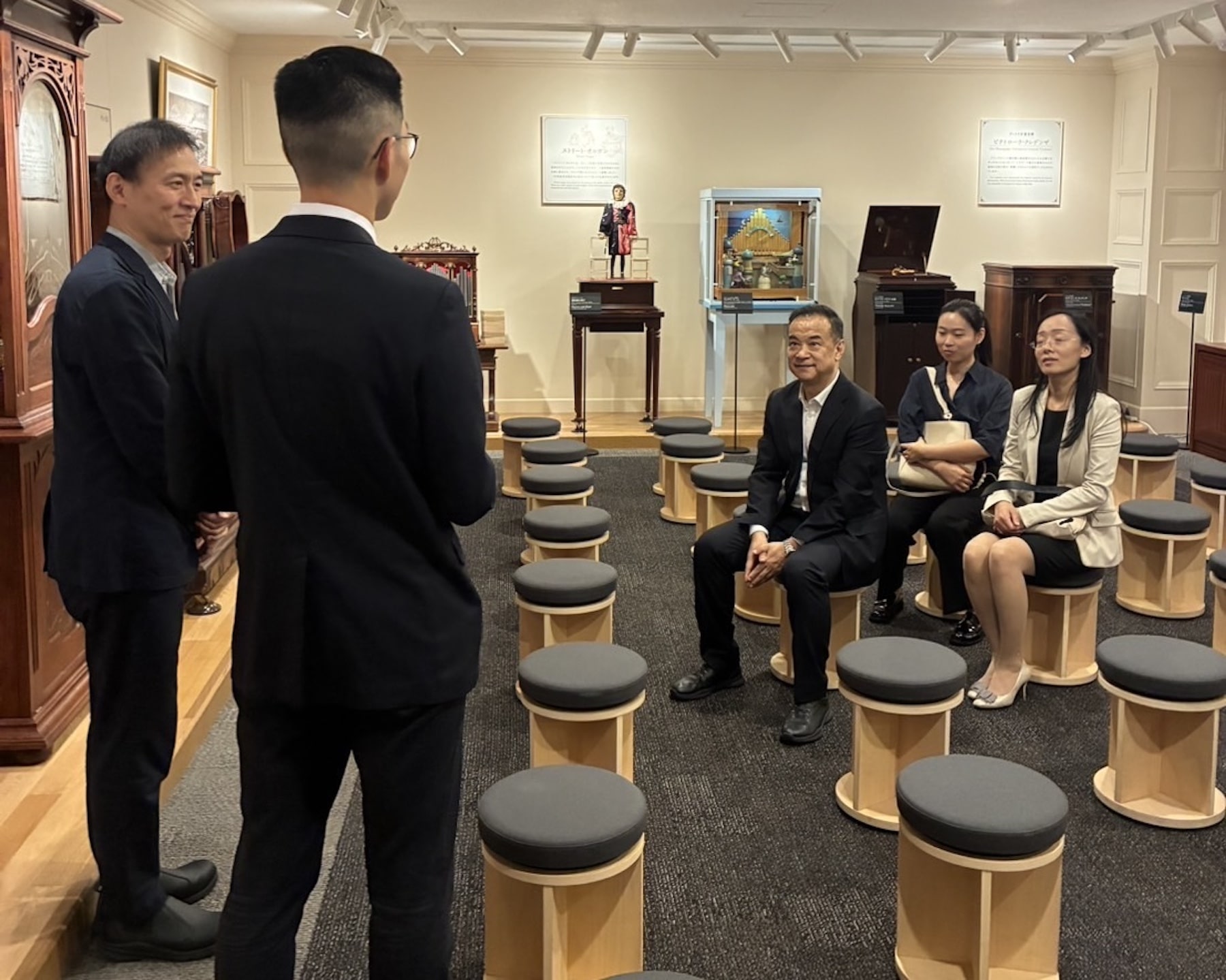 Following their talk, the Chinese official toured the Min-On Music Museum’s Classic Piano Room and Automatic Instrument Room.