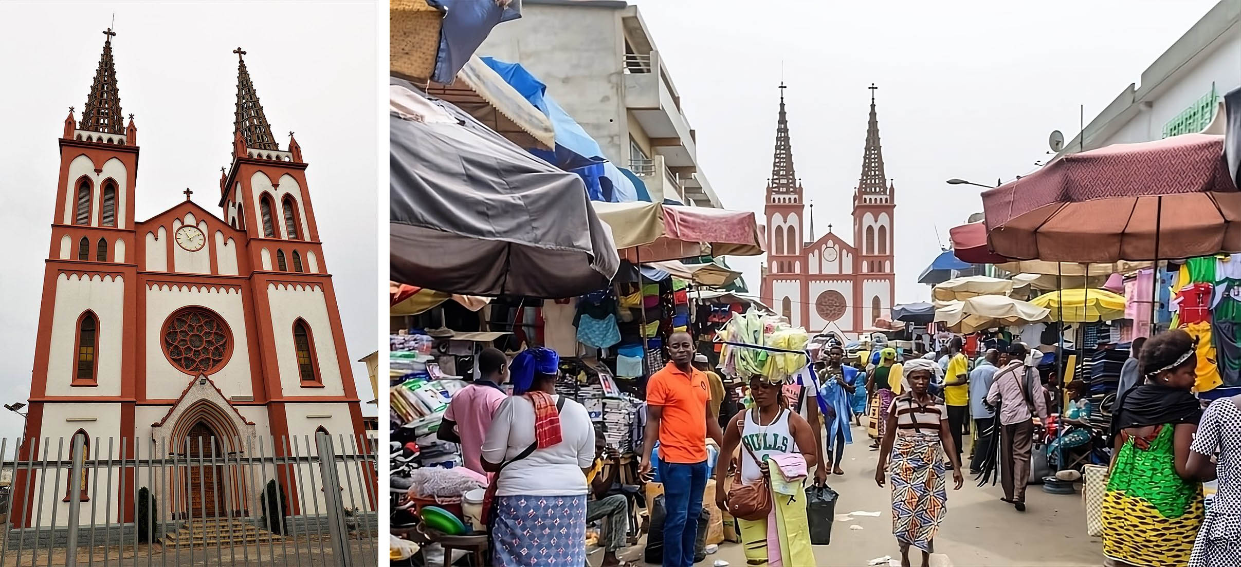 Nearby stands the Grand Market, one of West Africa’s largest, where all daily necessities are available alongside artisan crafts and traditional clothing.
