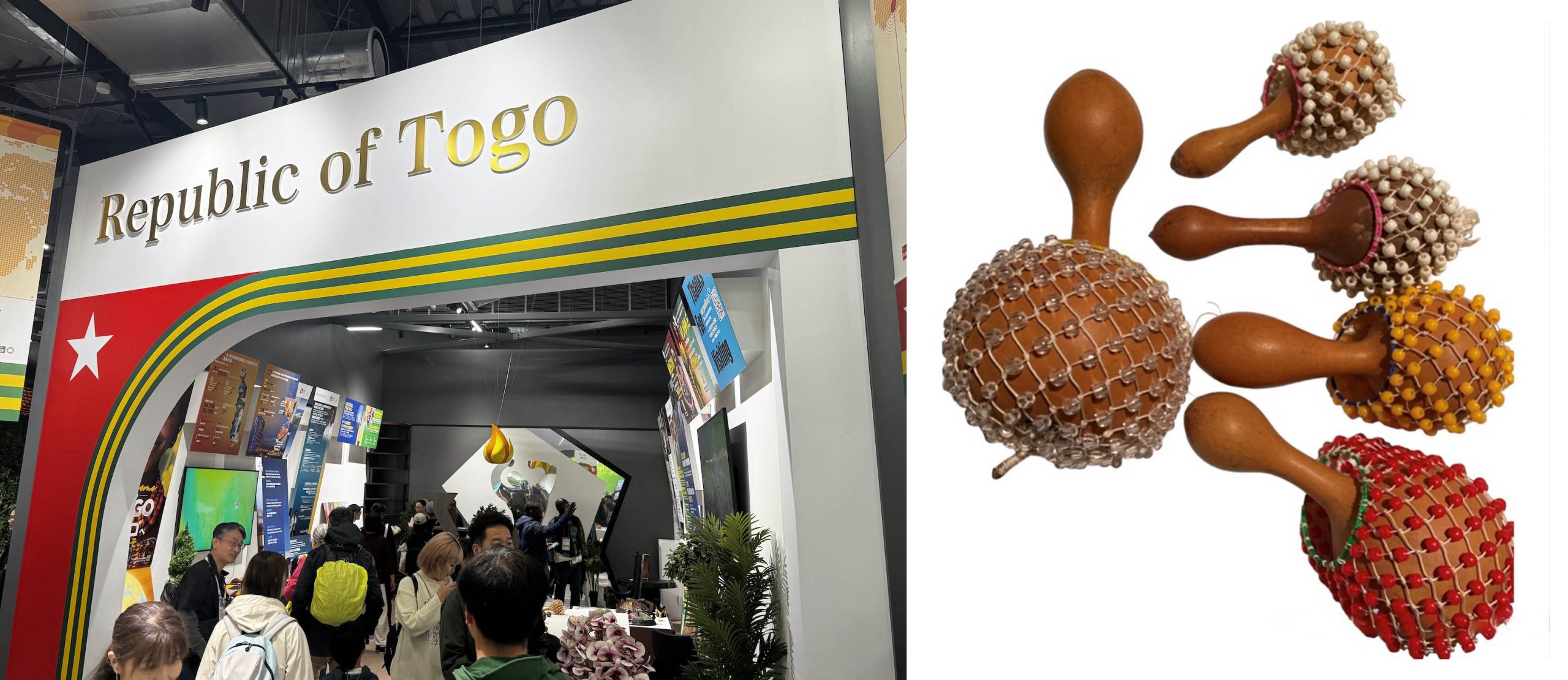 Togo is also home to many traditional instruments, with a focus on percussion. At the Togo Pavilion at the Osaka-Kansai Expo, visitors could experience traditional instruments such as the large drum Assivui, the side-held drum Adondo and the maraca-like Akaya.