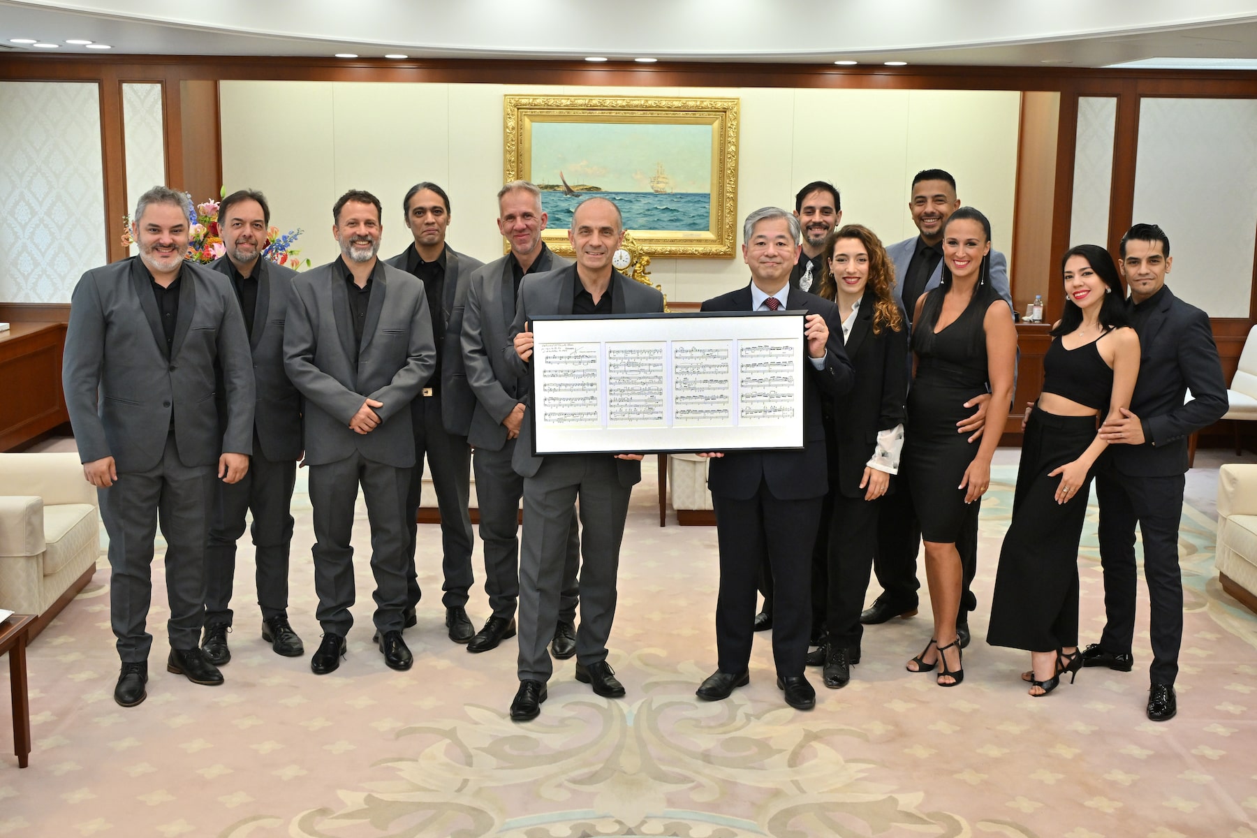 El 21 de enero, los artistas argentinos visitaron el Centro Cultural Min-On en Tokio. Allí entregaron la partitura original de Génesis, compuesta en honor a Daisaku Ikeda, el fundador de la Asociación de Conciertos Min-On fallecido en 2023. En dicha ocasión, Fabio Hager expresó su reconocimiento al fundador, cuya visión y fe en el poder que tiene la música para de tender puentes en un mundo cada vez más dividido lo llevó a crear Min-On en 1963. Y explicó que esta había sido la razón por la que el grupo había escogido Génesis como título de la obra.