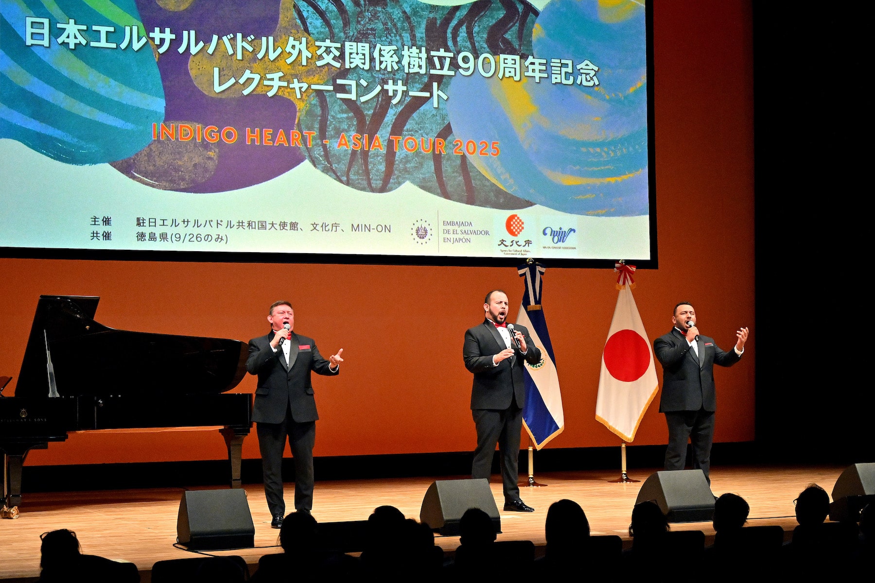 Ambos conciertos, organizados por la Embajada de El Salvador, la Agencia de Asuntos Culturales de Japón y Min‑On, contaron con la presentación del trío de ópera OPUS503, compuesto por José Guerrero, Mauro Iglesias y Esaú Osorio. En el escenario, los acompañó la soprano japonesa Mizuka Kobayashi y la pianista Karin Furukawa.