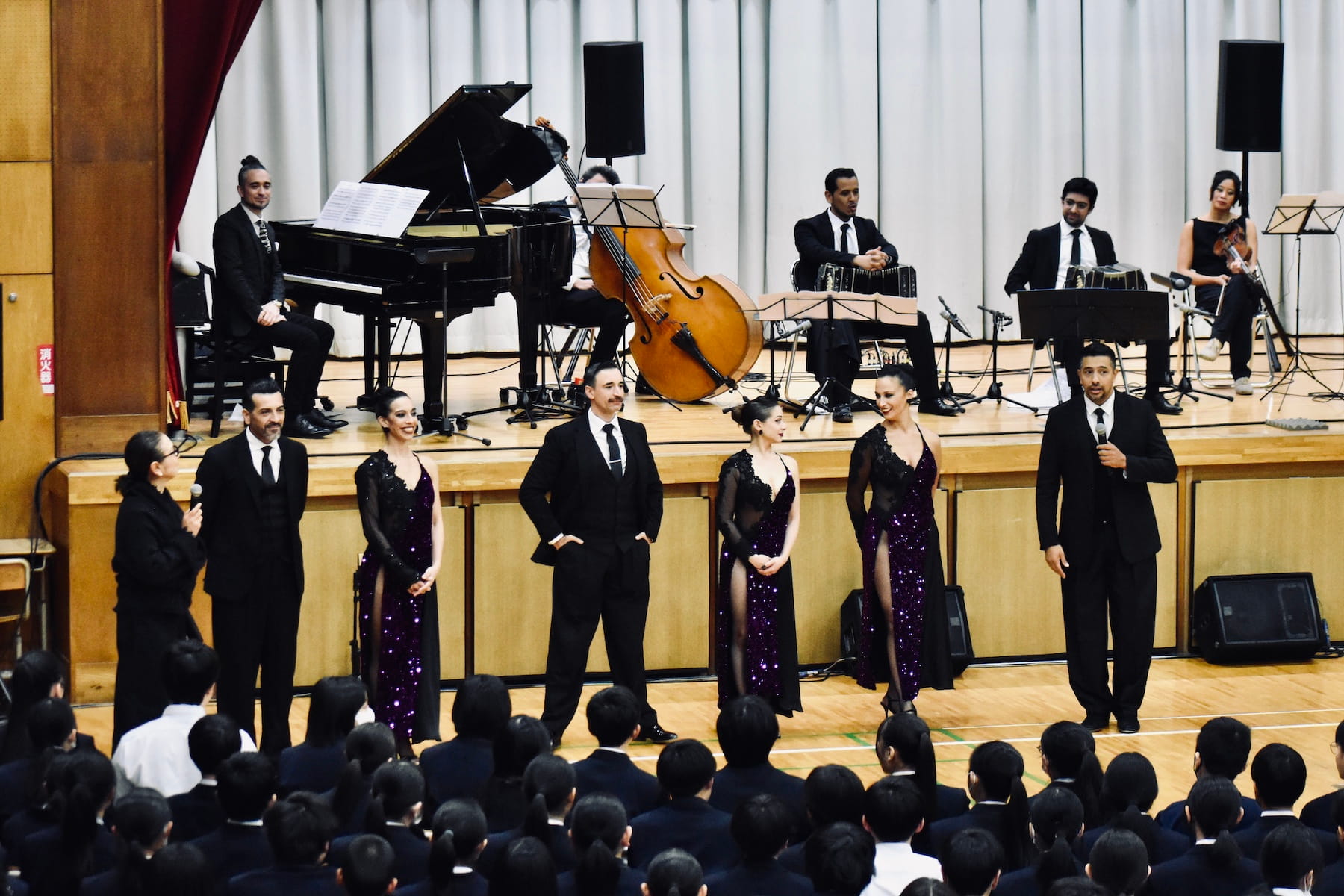 El repertorio abarcó desde la composición original del grupo, Samurái, hasta clásicos del tango internacionalmente apreciados, como Libertango y Balada para un loco. Cada pieza se recibió con entusiastas gritos de «¡Bravo!» y aplausos prolongados, que llenaron los gimnasios de emoción.