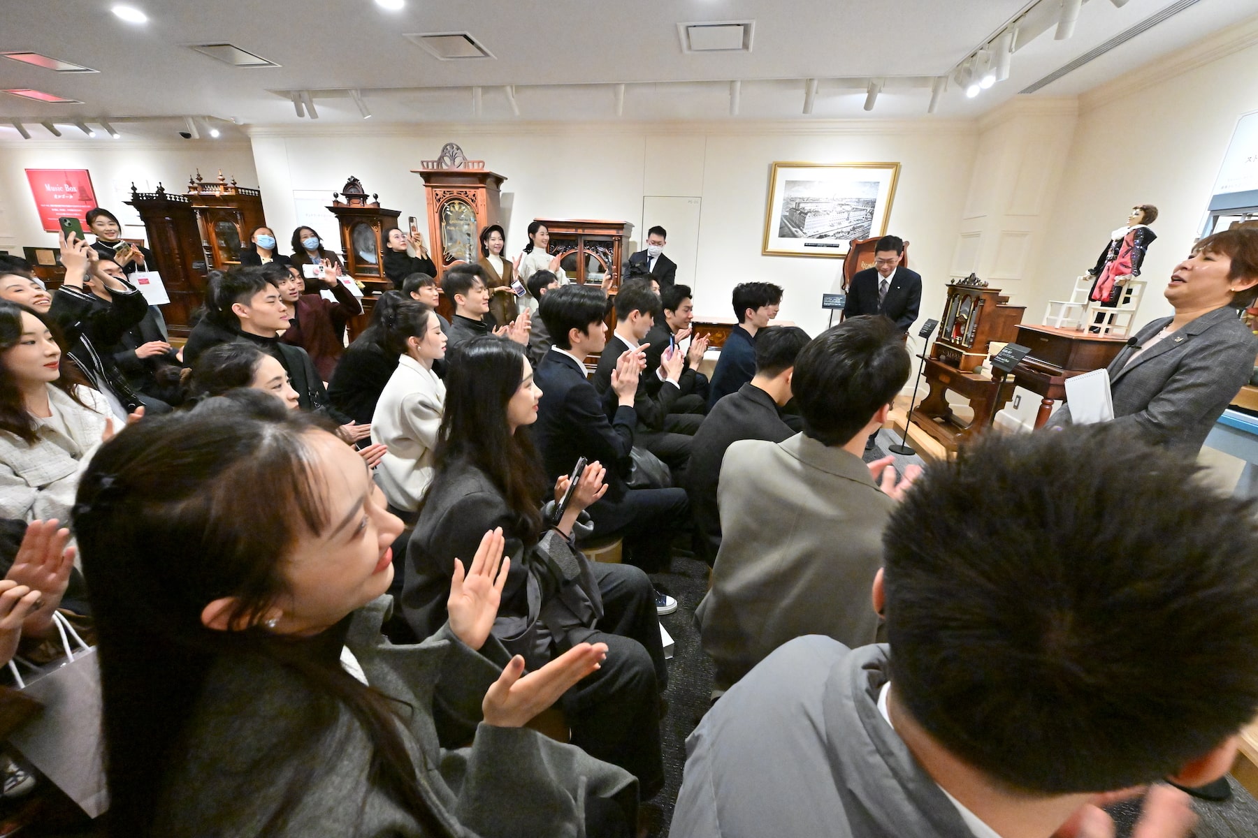 Le 17 février, les 65 membres de la troupe ont visité le centre culturel Min-on avant leur première représentation. M. Qing Boming, co-directeur de la compagnie (et directeur du service des échanges culturels de l’Association du peuple Chinois pour l’amitié avec les pays étrangers) a exprimé sa gratitude pour les efforts incessants de Min-on et de son fondateur, M. Daisaku Ikeda, en matière d’échanges culturels entre la Chine et le Japon au cours des 5 dernières décennies. Il a aussi déclaré que lui et les membres de son groupe feraient de leur mieux pour servir de pont entre les deux pays.