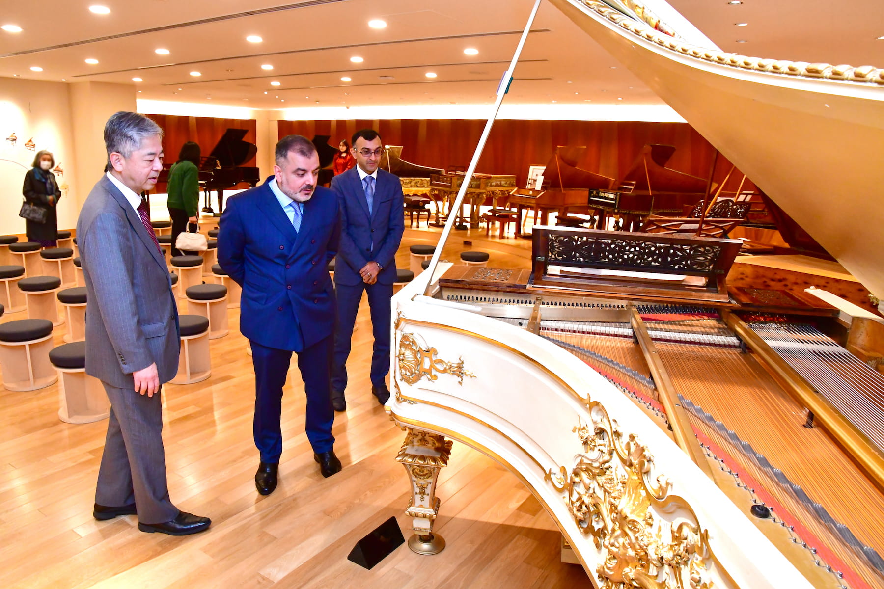 환담 후, 대표단은 클래식 피아노 전시실과 전통 악기 전시관이 있는 민음 음악 박물관을 견학했습니다.